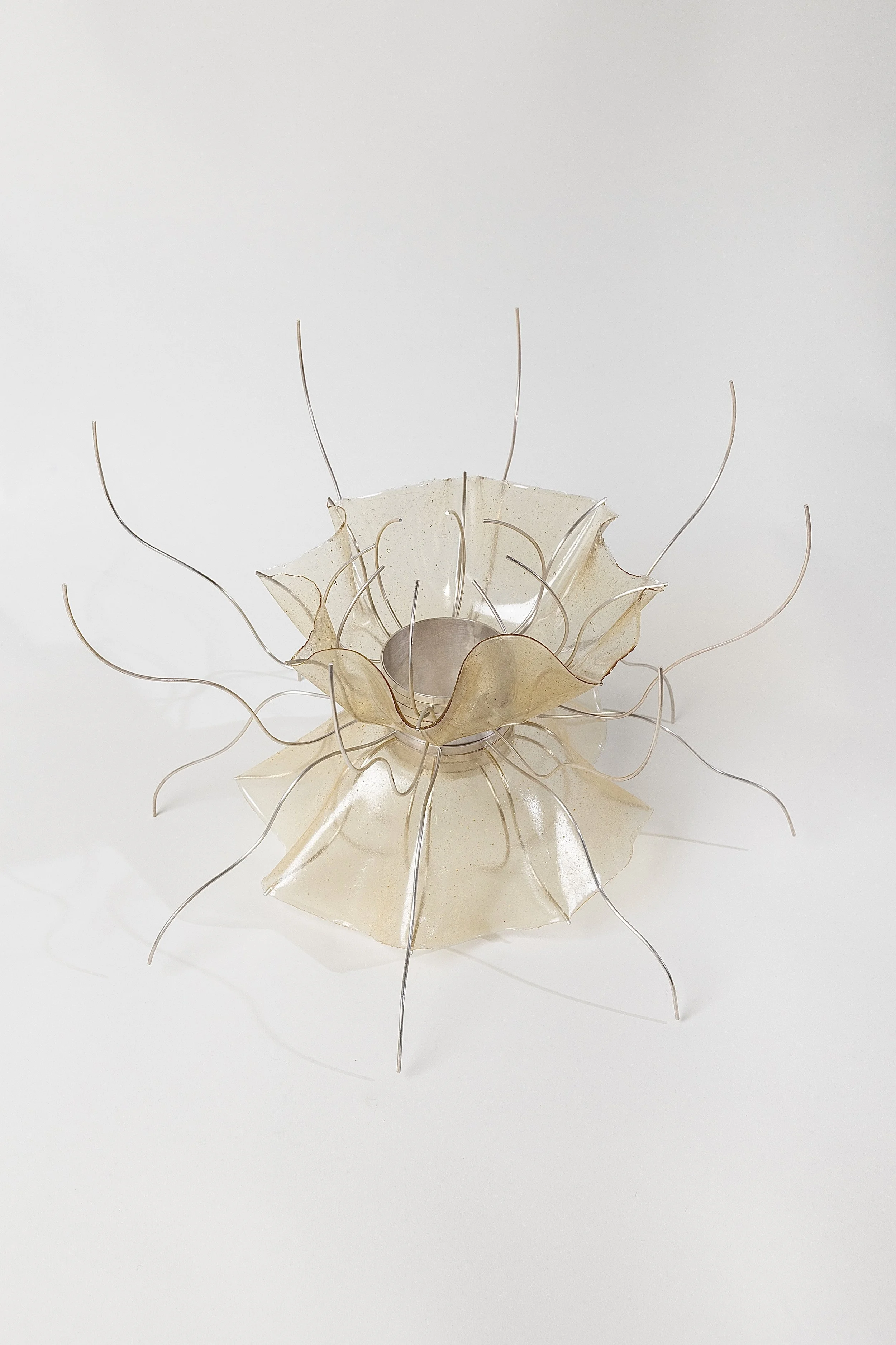 “Chrysalis” trae ispirazione dal processo di metamorfosi della crisalide. Le sue forme leggere accompagnano il passaggio dalla chiusura all’apertura, evocando la trasformazione che precede il volo. Il bracciale richiama le strutture eteree e le sfumature cangianti dei bozzoli. Un invito a scoprire nella fragilità del cambiamento la forza sottile che guida ogni evoluzione personale.