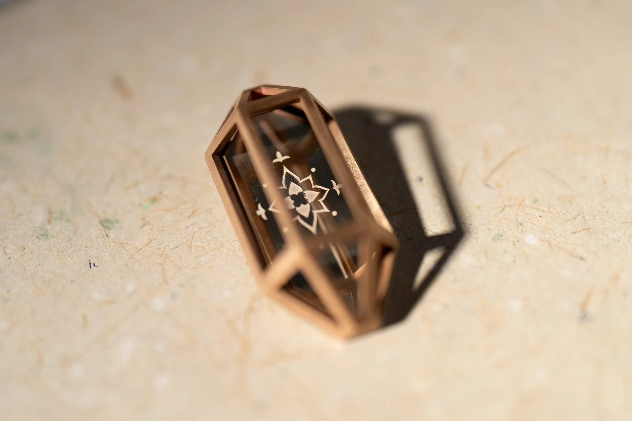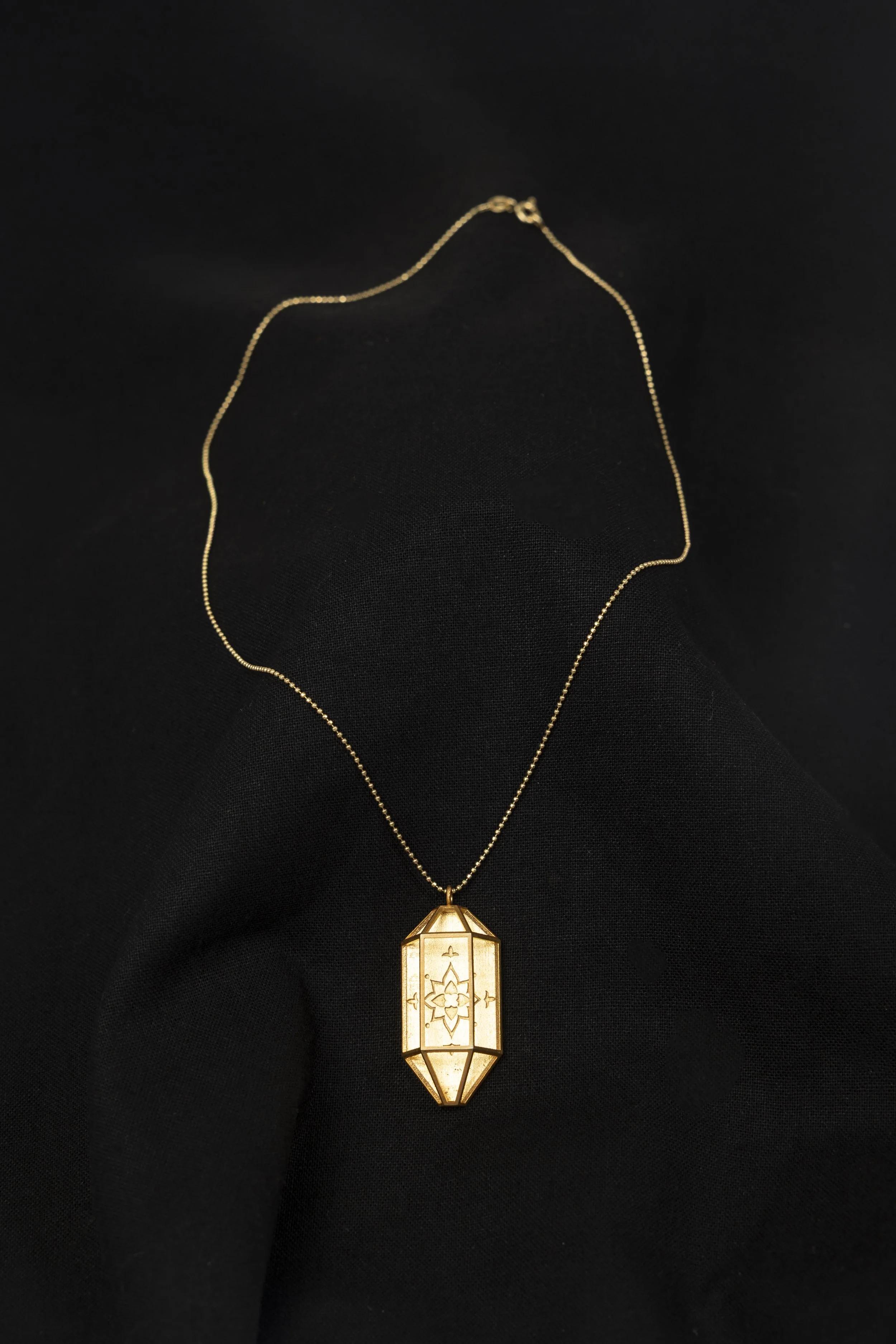 Pezzo unico ispirato alle geometrie e alle decorazioni della Basilica di Santa Maria Novella. La struttura del pendente richiama le lanterne gotiche che adornano le vie di Firenze e che un tempo la illuminavano. Le decorazioni, tra policromie e forme geometriche, evocano la facciata della Basilica, dove Romanico, Gotico e Rinascimento si uniscono in un capolavoro che racconta il passaggio tra le epoche.