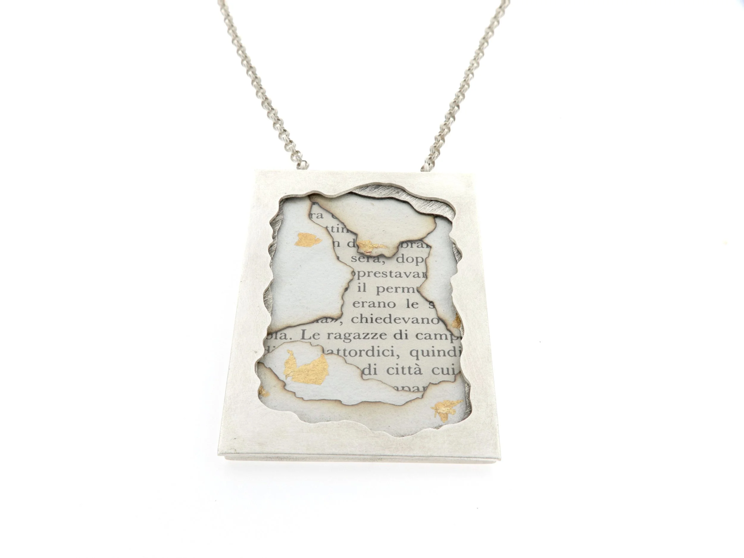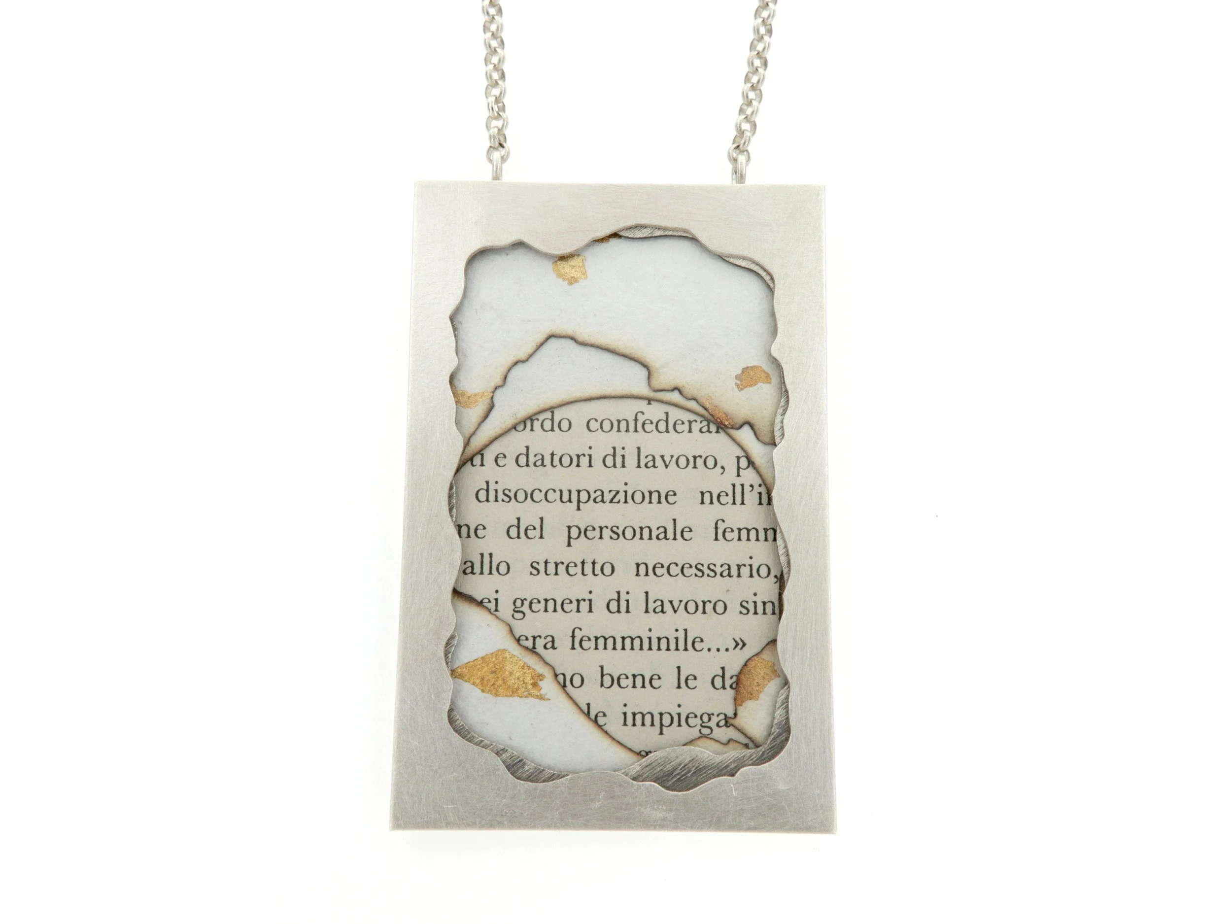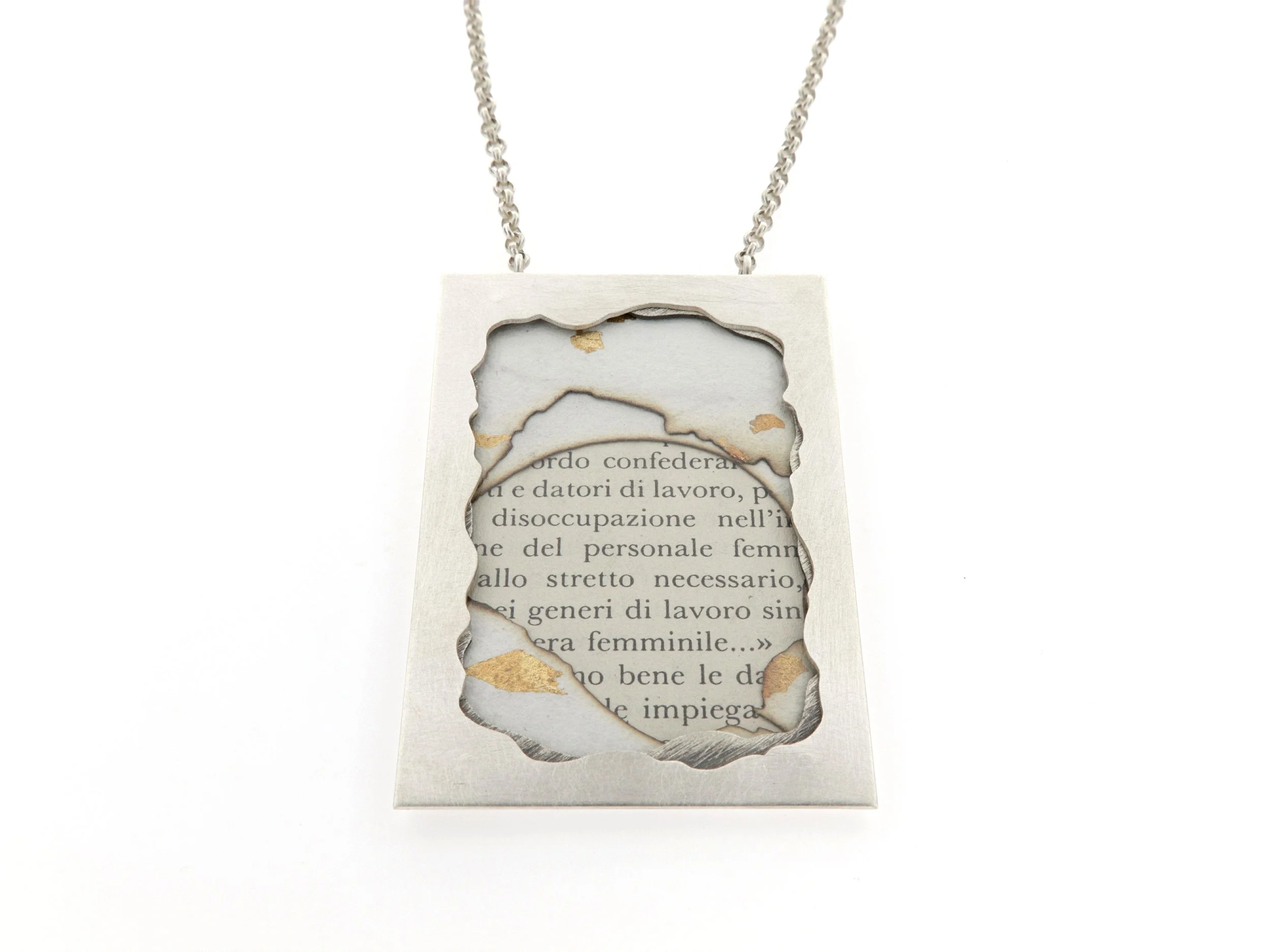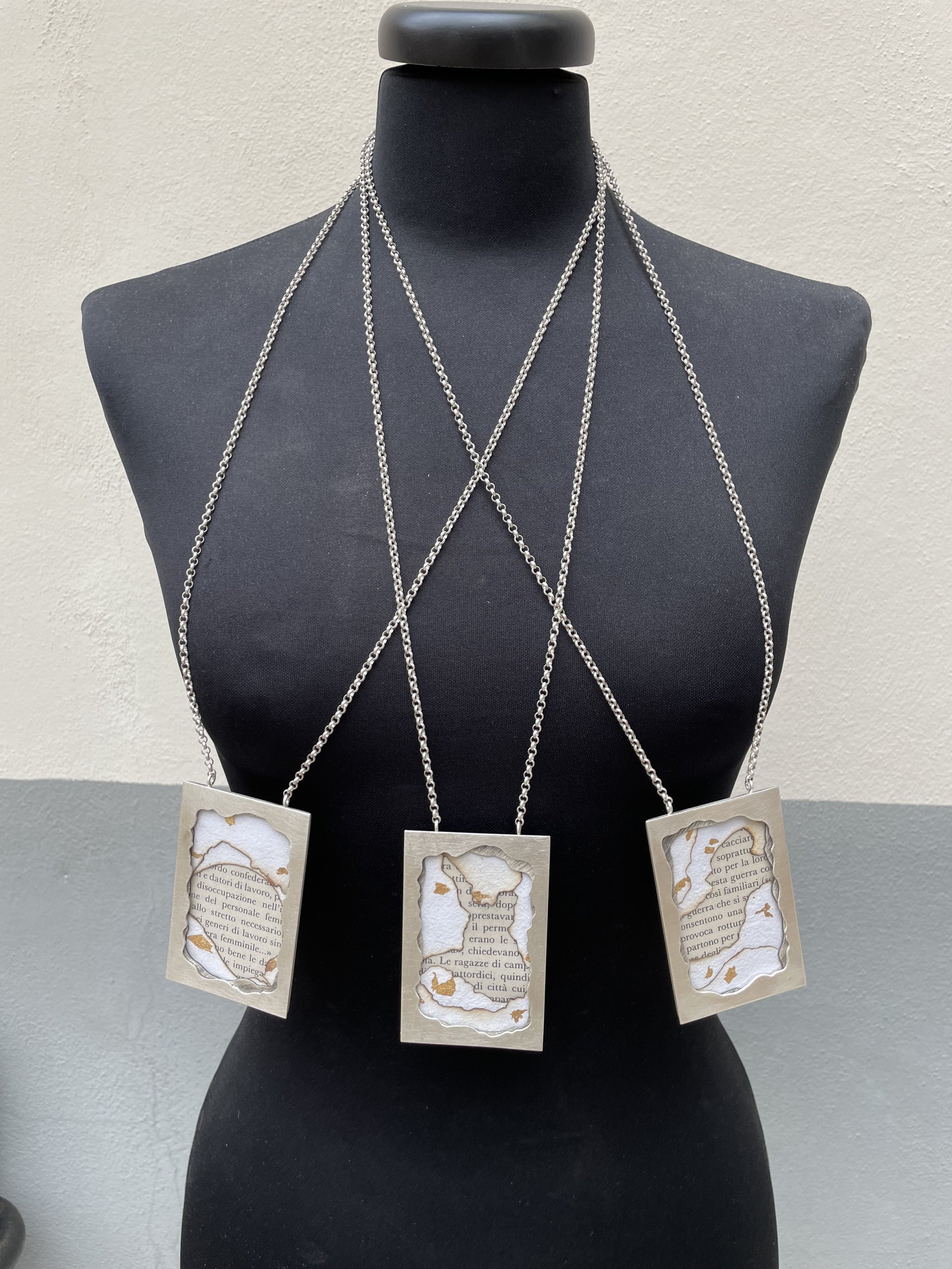 “Frammenti di memoria” è un set di tre pendenti realizzato per la giuria della 23ªedizione del Premio Internazionale Concorso Prime Donne tenutosi presso il Teatro degli Astrusi situato a Montalcino.